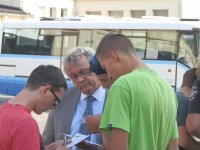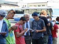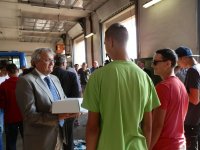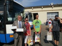 V pátek 16.září se uskutečnilo v areálu firmy ARRIVA v Berouně slavnostní předávání starších autobusů vybraným školám Středočeského kraje - SOŠ a SOU Neratovice, SOU Hluboš, SOU Hubálov a SOŠ a SOU Beroun za účasti hejtmana Středočeského kraje Miloše Petery, náměstka pro regionální rozvoj Karla Horčičky a prezidenta Hospodářské komory Vladimíra Dlouhého. Každé soutěžní družstvo bylo doplněno jedním z vylosovaných patronů. SOU Hubálov reprezentovali žáci třetího ročníku oboru Opravář zemědělských strojů - Vojtěch Šírek, Jan Votrubec a Vladimír Kvapil (náhradníci Adam Mráček a Ondřej Pitrmoc), patronem družstva byl prezident HK Vladimír Dlouhý. Každé družstvo mělo zodpovědět několik otázek z konstrukce autobusů a v praktickém úkolu demontovat pneumatiku z disku kola. Naši reprezentanti suveréně vyhráli nejen v praktickém úkolu, ale i v celkovém hodnocení. Jako odměnu získali velký dort a upomínkové předměty. Následně si všichni prohlédli jednotlivá pracoviště servisu a vyzkoušeli trenažer pro výuku řidičů autobusů.