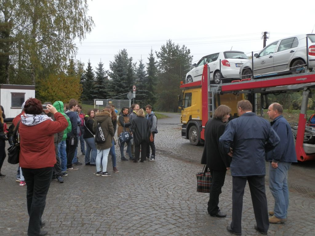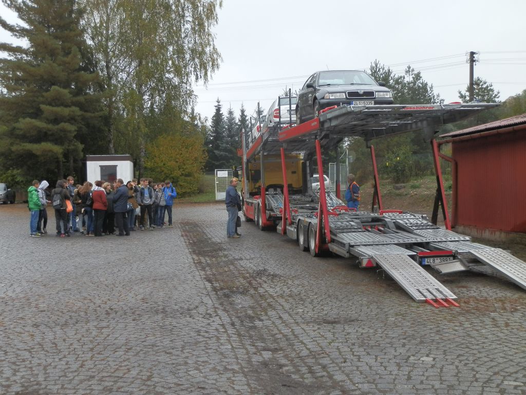 V pátek 16.října navštívili naší školu žáci několika základních škol ze Středočeského kraje. Exkurze se uskutečnily v rámci uzavřené sektorové dohody pod patronací Krajské hospodářské komory a Středočeského kraje. Pracovníci firmy LITRA s.r.o. Mnichovo Hradiště seznámili žáky s odpovědnou prací řidiče nákladního automobilu a ukázali nakládku a vykládku osobních automobilů na přepravník aut. Vzácnou návštěvou pro nás byl přítomnost radního Středočeského kraje Mgr. Karla Horčičky a zástupkyně Krajské hospodářské komory Střední Čechy paní Vladislavy Šizlingové.