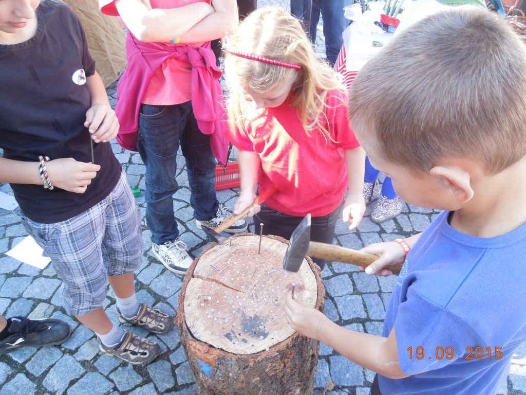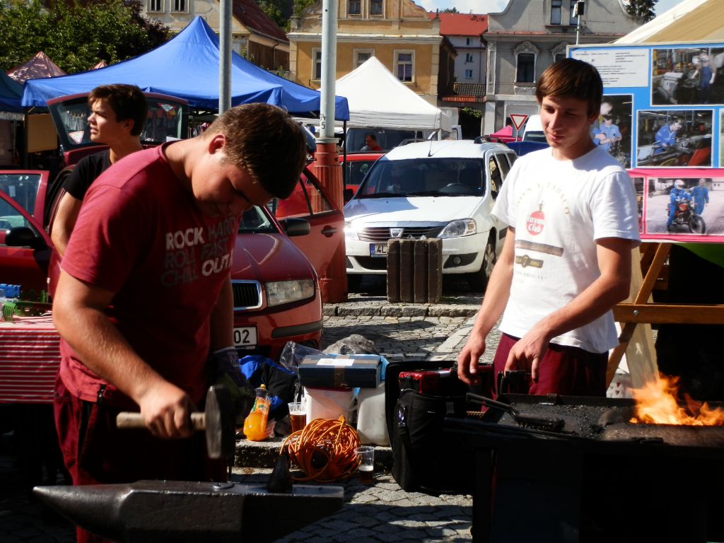V sobotu 19.září 2015 jsme se zúčastnili na náměstí v Mnichově Hradišti akce: "Zažít Hradiště jinak", na které naši žáci předváděli ukázky kovářského řemesla, prodávali drobné kovářské výrobky a nabídli dětem vyzkoušet svou šikovnost při zatloukání hřebíků a zdobení perníčků.