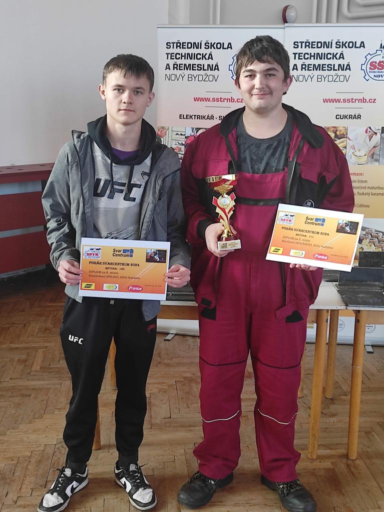 Žáci z 3.A (Martin Novák a Dominik Drla) se zúčastnili dne 24.10.2024 soutěže svařování v Novém Bydžově v doprovodu mistra svařování p. Jakuba Pavlíčka.